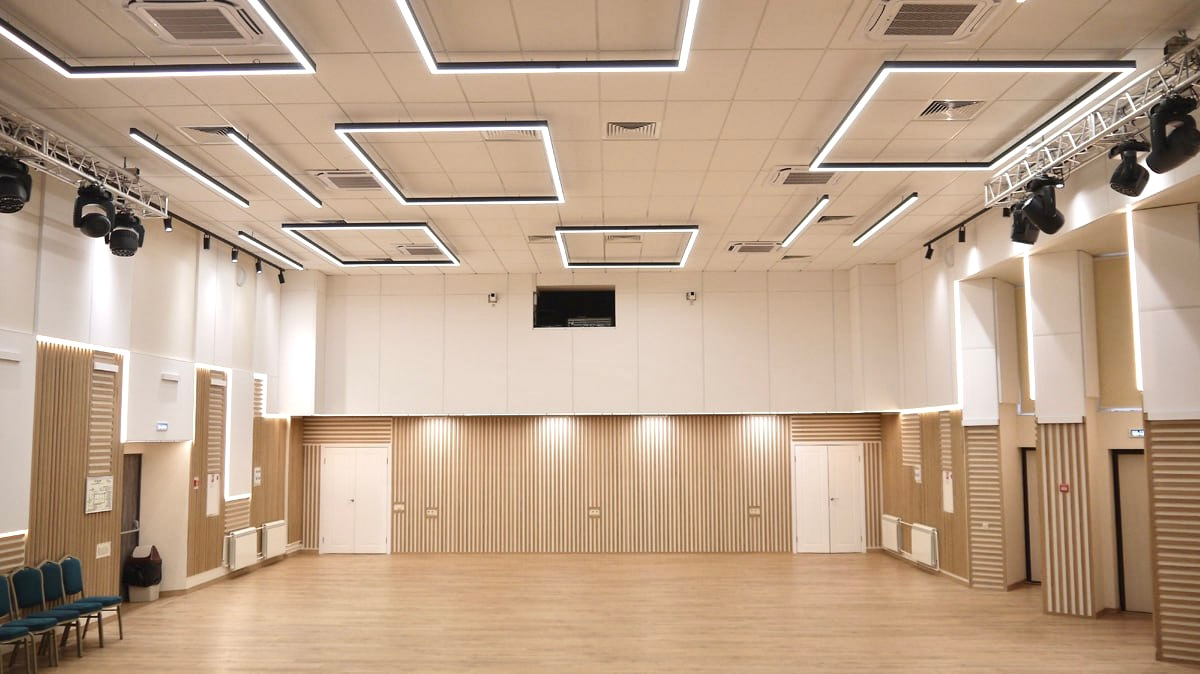 Холл в музее выполнен негорючими